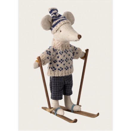 A mouse ready for hours of fun on the slopes during the cold wintertime. Each playset contains a warmly dressed mouse with a pair of ski and poles. Look at the tiny knitted hat that will keep the ears warm.