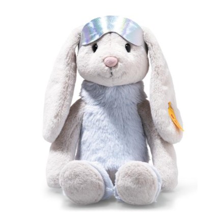 “Skiing is the most fun thing you can do!” Bestselling Hoppie rabbit thinks so too, which is why she has thrown on a sporty ski outfit. So look out for this adorable winter rabbit with her fluffy turtleneck jumper made of ice blue plush and matching leg warmers whizz past you on the slopes. Hoppie won’t let you take away her cool outfit - it is firmly attached to her body and cannot be removed. To ensure that Hoppie cuts a fine figure both when plowing and waving, she has the perfect doll-like dangling body. Weight bags filled with granules in the arms, feet and body give her perfect stability. Hoppie protects her eyes with reflective ski goggles, which she can also casually slide onto her head for après-ski. And after an exhausting day of skiing, the cuddly soft plush bunny falls into bed tired but overjoyed.