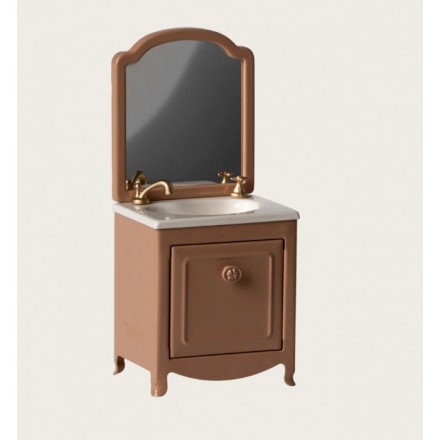 A very essential item for the the bathroom in any mouse house. It has a small closet under the sink and of course a mirror as well. Add the Maileg toilet and bathtub to extent the play.