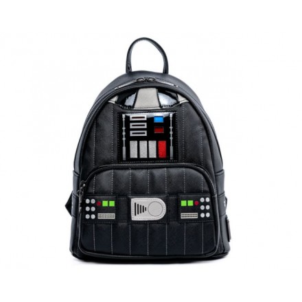 Take your Star Wars™ collection, and outfit, to the next level with Loungefly’s Star Wars Darth Vader™ Light Up Cosplay Mini Backpack! This mini backpack has light up features and depicts elements of Darth Vader’s classic suit armour as seen throughout the stellar series! It’s is a fun accessory for Star Wars fans and makes a great complement to a Darth Vader inspired outfit or cosplay. The Star Wars Darth Vader Light Up Cosplay Mini Backpack is made of vegan leather (polyurethane) with patent leather trim. Bag has adjustable shoulder straps, sturdy metal hardware, and features: moulded metal, embroidered, quilted, debossed, printed, and metal zipper charm details. Take note of the coordinating design of the inside lining fabric. This bag is an officially licensed Star Wars product. Bag Dimensions: 9” W x 10.5” H x 4.5” D (Please note: width is measured across the bottom of the bag.)