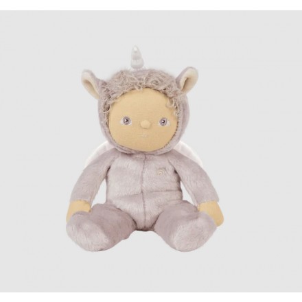 Dinky Dinkum Dolls - Uma Unicorn is a lilac-purple bundle of joy, bringing a swirl of magic with every hug. With short curly hair, a fluffy hood adorned with a shimmering silver horn, and soft purple ears, Uma is ready to leap into imaginative adventures. Perfectly sized for little hands, this unicorn friend is all about comfort and fun, adding a sprinkle of enchantment to playtime.