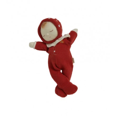 Rosy red and ready to snuggle, Toadstool Moppet brings a sprinkle of forest magic to every cuddle. With a mushroom-cap hood complete with embroidered spots, a frilly collar, and the softest cottony suit, this Dozy Dinkum is made for dreaming.