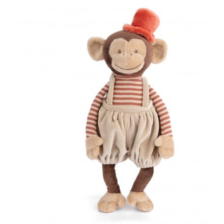 Meet Winston, the playful plush monkey with a big personality and even bigger style! Dressed in his charming rust-red corduroy overalls, matching cap, and striped long-sleeve shirt, Winston is always ready for fun and adventure. His long limbs and soft, huggable body make him perfect for both playtime and snuggles, while his cheeky smile is sure to brighten anyone’s day. Whether he’s swinging from imaginary vines or keeping you company at bedtime, Winston is the perfect partner for a lifetime of laughter and love.