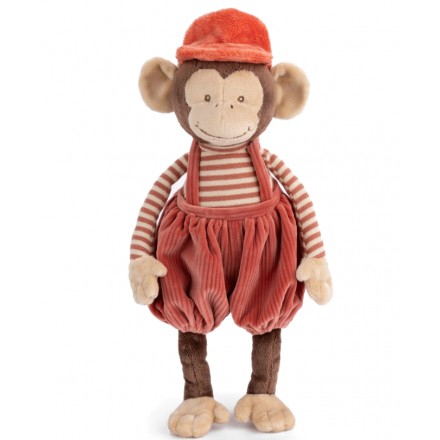 Meet Winston, the playful plush monkey with a big personality and even bigger style! Dressed in his charming rust-red corduroy overalls, matching cap, and striped long-sleeve shirt, Winston is always ready for fun and adventure. His long limbs and soft, huggable body make him perfect for both playtime and snuggles, while his cheeky smile is sure to brighten anyone’s day. Whether he’s swinging from imaginary vines or keeping you company at bedtime, Winston is the perfect partner for a lifetime of laughter and love.