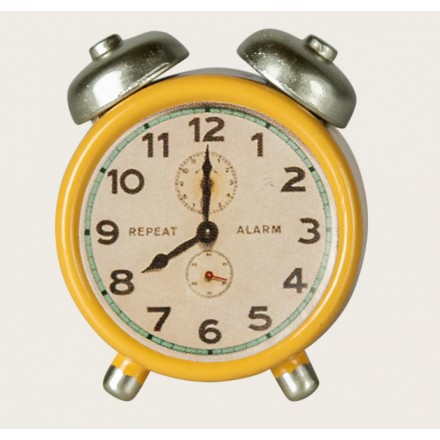 The bell rings and a new day of adventures starts. The small alarm clock is made in metal and with lots of small details.