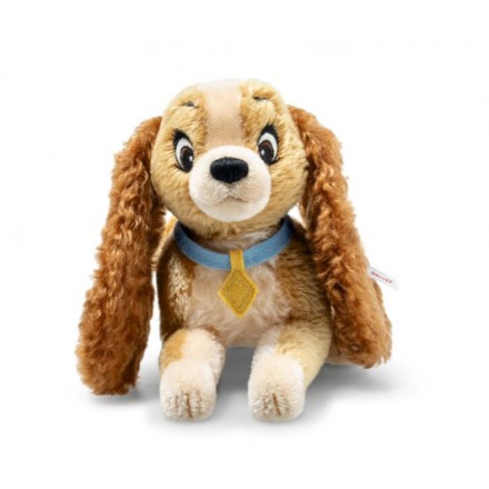 In 1909, in a small town, Jim Dear gives his wife Darling a cocker spaniel puppy as a Christmas present. The puppy, named Lady, grows up pampered by her doting owners. But her privileged life is upended by the arrival of a baby, as well as an unexpected romance with a street mutt called Tramp. The courtship blossoms providing one of the most iconic scenes from this enchanting 1955 animated musical romantic comedy film by Walt Disney. In a celebration of the 70th anniversary of one of Disney’s happiest motion pictures Steiff are delighted to welcome Lady to the Disney range. With great attention to detail, her beauty, demeanour and poise have been perfectly captured, complete with her light blue collar and diamond-shaped tag that she was gifted at six months old. This little Lady captures the heart and stays forever.