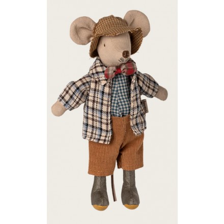 The granddad looks both wise and nice - he wears rubberboots, butterfly, pants and jacket and is always ready to cheer you up with all his many stories. The mouse has magnets in its hands.