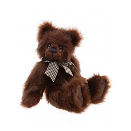 Charlie Bears Thompson is a beautiful traditional Teddy bear , Made from super soft Chocolate Brown Plush, He has a ribbon accessory and a hand stitched nose